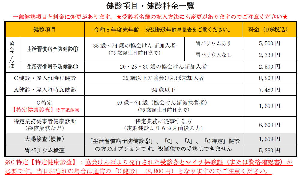 ⇒健康診断申込書(受診者名簿)(Excel形式) 2026.2.16UP